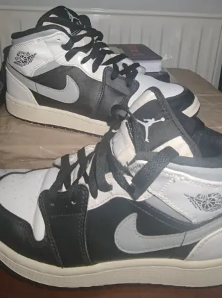 Vendo Nike Air Jordan 1 Mid originales, talla EU 41 (US 8). En buen estado general, con signos normales de uso (ver fotos). Color blanco, negro y gris, muy fáciles de combinar. Incluyen caja original. Zapatillas limpias y cuidadas, tal y como se ven en las fotos. Envío o entrega en mano. Respondo rápido, no dudes en escribirme.