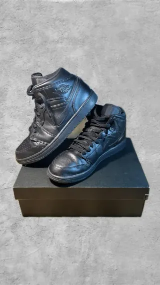 Zapatillas de tobillo medio Nike Air Jordan 1. ✨ - Diseño completamente negro. 🖤 - Logo de Jordan en relieve. Se han usado muy pocas veces (3 veces contadas) y solo tienen la puntera ligeramente arrugada. 😌 Escríbeme para más información. 📥 Precio negociable‼️‼️