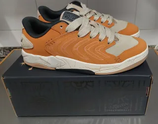 Zapatillas Nike Air Jordan Session SE. - Diseño moderno en tonos beige y naranja. - Cordones de color claro. - Detalle de costuras visibles en el lateral.