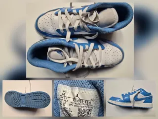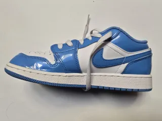 Zapatillas deportivas Nike Air Jordan 1 Low en color azul y blanco. Talla 38.5. - Diseño icónico de Jordan. - Cierre con cordones blancos. - Suela de goma azul.