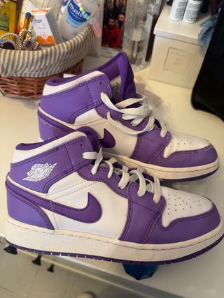 Zapatillas deportivas Nike Air Jordan en llamativos tonos morado y blanco. Un diseño icónico para tu colección. - Diseño de media caña. - Cierre con cordones blancos. - Swoosh de Nike en el lateral.