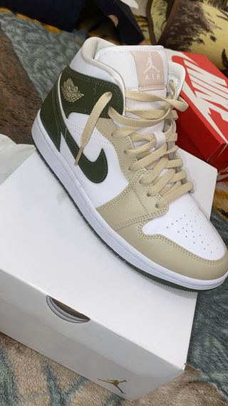 Zapatillas Air Jordan 1 con un diseño en verde y blanco. - Talla 44 Hombre, unisex. Zapatillas nuevas sin usar. Nike.