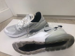 Zapatillas Nike Air Max 270 con un diseño inspirado en Off-White. - Color beige y blanco. - Detalle AIR en la suela. - Cordones marrones. - Talla 42 Está usada y con signos de desgaste‼️ 🔴 Más artículos en mi perfil. 📤 Envío rápido. Ref. A0.00