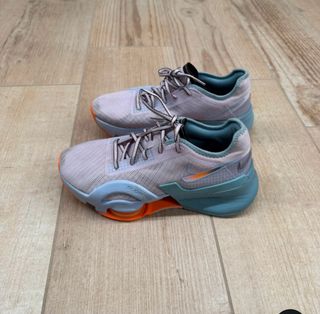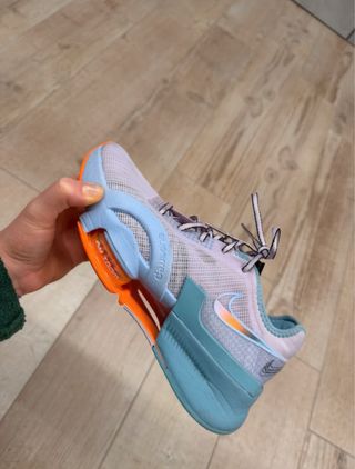 Zapatillas deportivas Nike Air Zoom SuperRep 3. - Diseño en tonos morados y azules. - Detalles en naranja y azul claro en la suela y el logo. Practicamente nuevas al solo usarla 3 veces. No dispongo de su caja original.