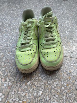 Zapatillas Nike Air Force 1 en un llamativo color verde oliva. - Diseño clásico de caña baja. - Swoosh distintivo en el lateral. - Suela de goma blanca.