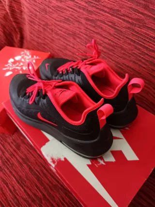 Zapatillas Nike Air Max en excelente estado, listas para estrenar. - Diseño moderno en blanco y rojo. - Detalles de malla transpirable. - Suela con amortiguación visible.