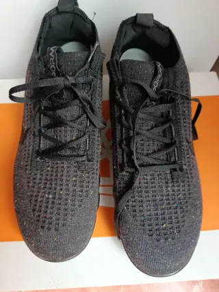 Zapatillas deportivas Nike Air VaporMax con un diseño moderno y detalles multicolores. - Parte superior de tejido técnico. - Cordones negros. - Suela con amortiguación visible.