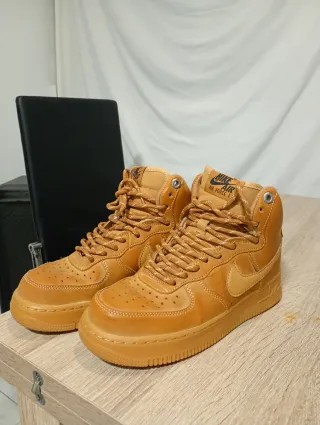 Modelo: Nike Air Force 1 High '07 LV8 WB Color: Wheat / Flax / Trigo (Marrón claro tipo bota) Talla: 36 Estado: Usadas, pero en buen estado general. Mínimos signos de uso en la puntera y ligero agrietamiento en el cuero del cuello (ver fotos). Motivo de venta: Las vendo por no usar Notas: Originales 100%.