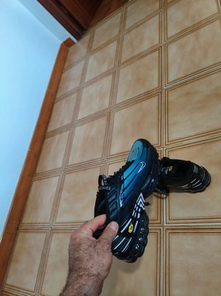 Zapatillas deportivas Nike TN Air Max en llamativos tonos negros y azules. Perfectas para un estilo urbano y deportivo. - Diseño moderno y dinámico. - Detalles en azul eléctrico. - Suela con tecnología Air Max.