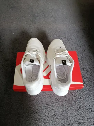 Vendo un par de zapatillas Nike Air Max impecables. Son de color gris y blanco, talla 45. Están en perfecto estado, sin usar. - Diseño elegante y deportivo. - Cómodas y ligeras. - Ideales para el día a día.