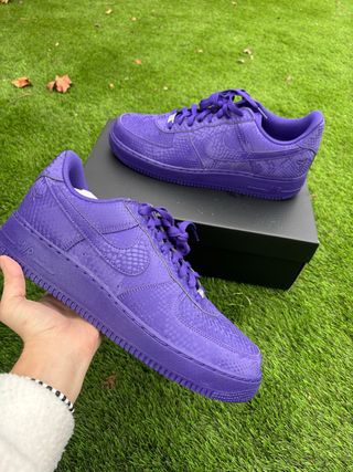 Zapatillas Nike Air Force 1 Kobe Bryant con un diseño único. 👏Estado: Nuevo con etiquetas con ticket 👟Talla 42 📦Envío 12/24 horas - Acabado texturizado imitación piel de serpiente. - Color morado vibrante. - Logo Swoosh característico