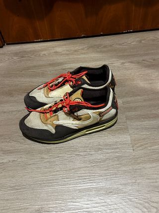 Zapatillas Nike Air Max 1 edición especial Travis Scott. - Combinación de colores barroque brown. - Cordones rojos. - Diseño distintivo de Travis Scott.