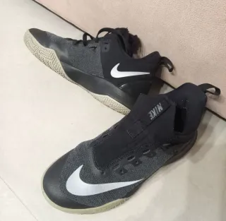 Zapatillas de baloncesto Nike Zoom en color negro y gris. Diseñadas para ofrecer rendimiento en la cancha. - Parte superior de malla transpirable. - Sistema de amortiguación Zoom Air. - Suela de goma para un agarre óptimo.