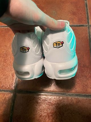 Zapatillas deportivas Nike Air Max Plus en tonos grises y blancos. Un diseño icónico para el día a día. - Parte superior de malla transpirable. - Amortiguación Tuned Air. - Suela de goma para mayor tracción. En buen estado