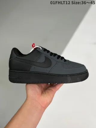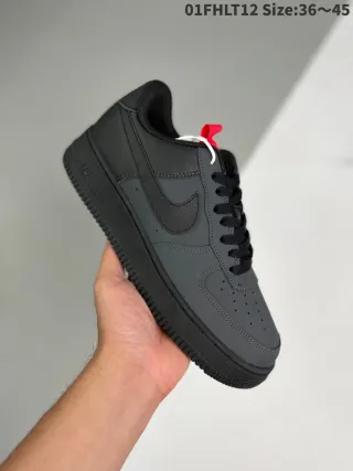 Zapatillas Nike Air Force 1 en color negro y gris. Un clásico del streetwear. - Diseño icónico. - Cordones negros. - Suela de goma negra.