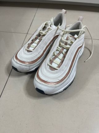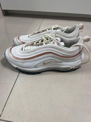 Zapatillas deportivas Nike Air Max 97 con un diseño icónico y moderno. La compré en corte inglés conservo el ticket de compra, son originales, no son una falsificación. La vendo porque tengo un juanete y me pretan mucho y he decidido venderlas porque me hacen daño.