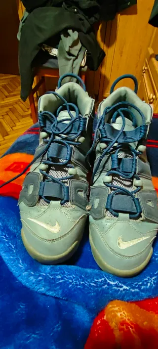 Zapatillas deportivas Nike Air More Uptempo en talla 46. Diseño moderno y cómodo. - Combinación de colores azul y gris. - Cierre con cordones.