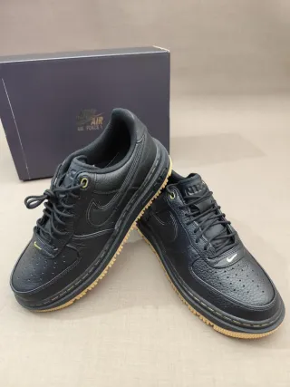 Zapatillas Nike Air Force 1 Luxe en color negro con detalles dorados. Un diseño moderno y elegante. - Material exterior de cuero. - Suela de goma duradera. - Cierre con cordones.