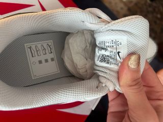 Zapatillas deportivas de la marca Nike sin estrenar. Son blancas con detalles en rosa y tienen la puntera perforada para ventilación. Talla 35.5.