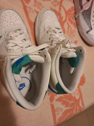 Zapatillas deportivas Nike de corte bajo, perfectas para el día a día. - Diseño moderno en tonos azules y detalles blancos. - Cierre con cordones blancos. - Logo de Nike en el lateral. Puestas un par de veces