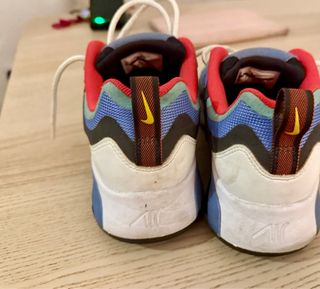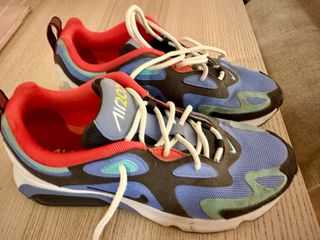 Zapatillas deportivas Nike Air 200 con un diseño moderno y llamativo. - Combinación de colores azul, rojo y verde. - Cordones blancos. - Detalle de logo en la lengüeta.