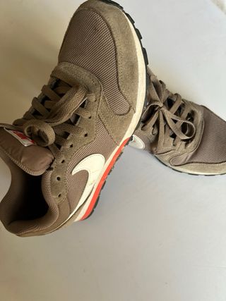 Zapatillas deportivas Nike de estilo casual. - Diseño en tonos marrones y detalles blancos. - Cierre con cordones.