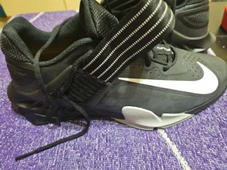 Zapatillas de baloncesto Nike en color negro y blanco. Diseñadas para ofrecer comodidad y rendimiento en la cancha. - Cierre con cordones. - Detalle de banda elástica en el tobillo. - Suela de goma. - Logo de Nike en el lateral.