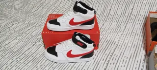 Zapatillas deportivas de caña media con un diseño moderno. - Combinación de blanco, negro y rojo. - Cierre con velcro en el tobillo. - Logo de Nike en el lateral y en la lengüeta.