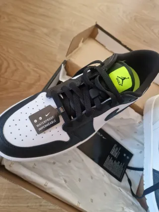Zapatillas de golf de la marca Jordan en color negro y blanco. - Diseño icónico. - Detalles en color verde lima en el interior. - Incluyen etiquetas originales.