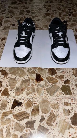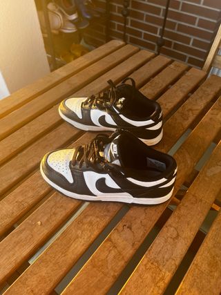 Vendo un par de zapatillas Nike Dunk. Son de color blanco y negro y están ligeramente usadas, con algunas marcas de desgaste. - Modelo: Nike Dunk - Talla: 41 - Material: Cuero