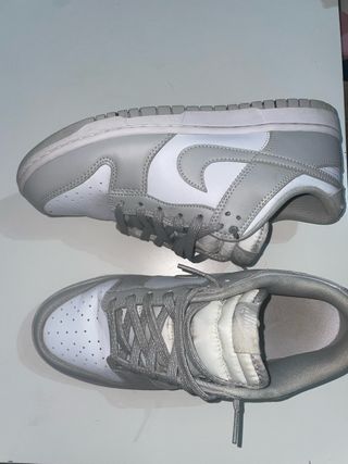 Zapatillas Nike Dunk en tonos grises y blancos. - Diseño clásico. - Cordones grises con detalles blancos. - Suela de goma.