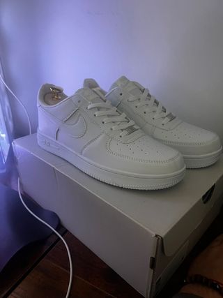 Zapatillas blancas estilo Air Force, unisex, nuevas y listas para usar. Perfectas para cualquier look urbano o casual, combinan con todo y dan un toque moderno a tu outfit. Cómodas, ligeras y fáciles de mantener, ideales para salir, pasear o el día a día. Talla: 40 Color: Blanco Estado: Como nuevas prácticamente sin uso Envío seguro. ¡No dejes pasar estas sneakers! Si tiene alguna duda, no tenga ningún problema en escribirme!