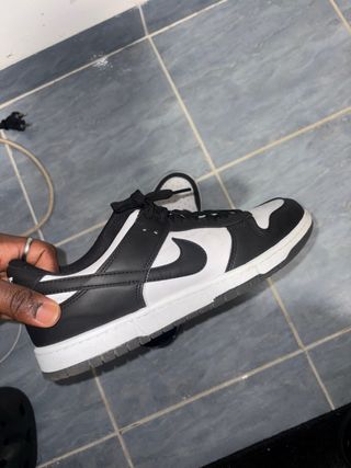 Zapatillas Nike Dunk Low con el clásico diseño Panda. - Combinación de colores blanco y negro. - Cordones blancos adicionales incluidos.