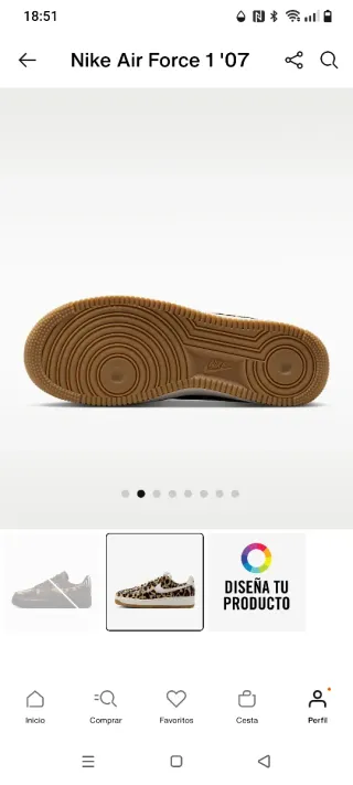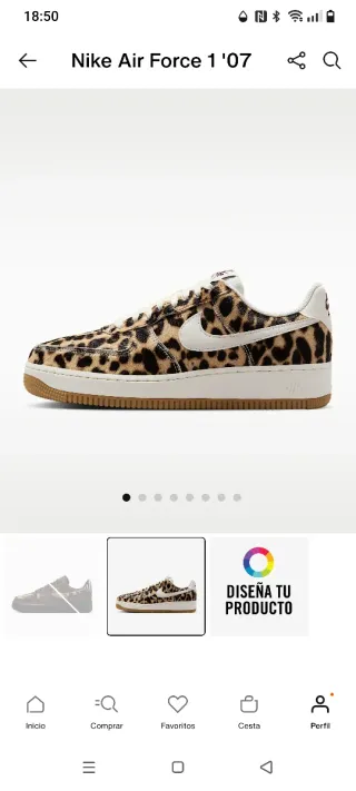 Zapatillas Nike Air Force 1 '07 con un llamativo estampado animal. Se han utilizado dos veces. Los vendo porque me están pequeños. Han costado 140€. Número 44 (pie 27,3 cm) - Diseño con estampado de leopardo. - Swoosh lateral en color blanco. - Suela de goma marrón.