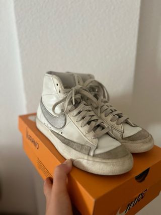 Vendo zapatillas Nike blancas altas, en buen estado. Son ideales para un look casual y cómodo. - Modelo Blazer Mid '77. - Color blanco con detalles grises. - Talla 42