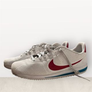 Zapatillas deportivas Nike Cortez Ultra en talla 42.5. Combinan blanco con detalles en rojo y azul. Un clásico atemporal que marcó tendencia desde su lanzamiento en 1972. Este modelo icónico no solo destaca por su diseño elegante y comodidad superior, sino también por su lugar especial en la cultura pop. La anécdota: Estas zapatillas se hicieron legendarias gracias a la película Forrest Gump protagonizada por Tom Hanks, donde acompañaron al personaje principal en su épica carrera a través de Estados Unidos. Edición especial para amantes del estilo retro y la historia del cine. ¡Perfectas!