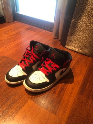 Zapatillas deportivas Nike Air Jordan 1 Mid. - Diseño icónico en blanco, negro y rojo. - Perfecto estado - Cordones rojos vibrantes. - Logo de Jordan en la lengüeta. - Precio negociable Cualquier pregunta no dude en preguntar