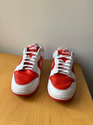 Vendo Nike Dunk Low originales, color rojo y blanco (estilo University Red). Zapatillas icónicas, cómodas y muy fáciles de combinar, tanto para uso diario como para outfits más street. 👟 Talla: 43 📌 Estado: buen estado general, bien cuidadas (ver fotos)