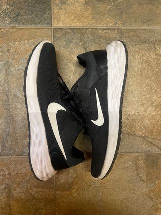 Zapatillas deportivas Nike en color negro con detalles blancos. - Diseño moderno y ligero. - Cierre con cordones. - Logo de Nike en el lateral y la plantilla. - Tienen muy poco uso