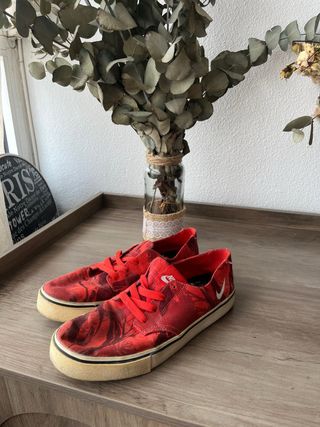 Zapatillas Nike de lona, rojas con estampado. Ideales para un look casual. - Diseño único con estampado. - Suela de color beige. - En buen estado.