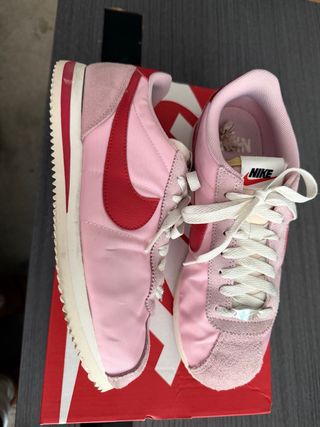 Zapatillas Nike Cortez en talla 41, con una combinación de colores rosa y rojo. - Diseño clásico de Nike Cortez. - Detalles en rosa vibrante. - Materiales de calidad.