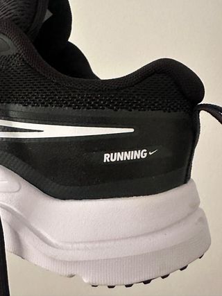 Zapatillas deportivas Nike en color negro con detalles blancos. - Diseño moderno y deportivo. - Logotipo de Nike en el lateral. - Suela blanca. - Detalle RUNNING en el lateral.