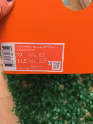 Botas de Zapatillas de fútbol Nike Zoom Vapor 16 Academy FG/MG totalmente nuevas a estrenar, sin uso y con caja original. Color oficial Ember Glow / Aurora Green, muy llamativo y actual. Diseñadas para velocidad, ligereza y ajuste ceñido, ideales para jugadores rápidos. Características: ✔️ Talla EUR 44 (CM 28–28,5) ✔️ Suela FG/MG: apta para césped natural y artificial ✔️ Upper sintético ligero con buen control del balón ✔️ Ajuste tipo calcetín cómodo y estable ✔️ Marca y modelo originales (Nike) ✔️ Nunca usadas Perfectas tanto para entrenamientos como para partidos oficiales. #nike #nikefootball #zoomvapor #vapor16 #futbol #botasdef