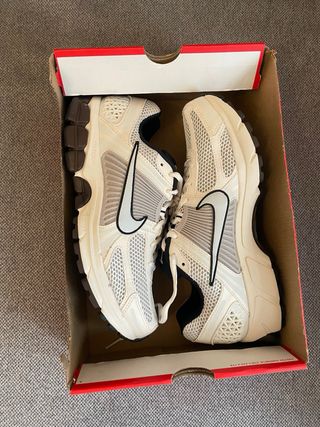 Zapatillas Nike Vomero 5 en tonos beige y blanco. Diseño moderno y cómodo. -nuevas a estrenar nunca usadas -talla 44 - Parte superior de malla transpirable. - Detalle de Swoosh en contraste. - Suela con amortiguación Zoom Air.
