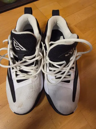 Zapatillas de baloncesto de color negro con detalles dorados y suela blanca.Why not zero - Cierre con cordones. - Diseño moderno y deportivo. - Materiales resistentes para un buen agarre.