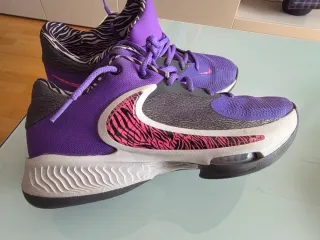 Zapatillas deportivas Nike Zoom Freak 4 EP. - Diseño en color morado con detalles en rosa y estampado de cebra. - Parte superior de malla transpirable. - Suela con amortiguación visible.