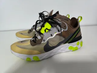 Zapatillas deportivas Nike React Element 87 con un diseño moderno y llamativo. - Combinación de colores marrón y amarillo. - Talla 43. No accepto ni cambios ni devoluciones.