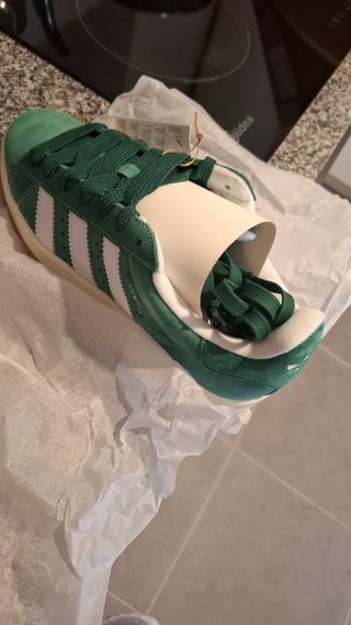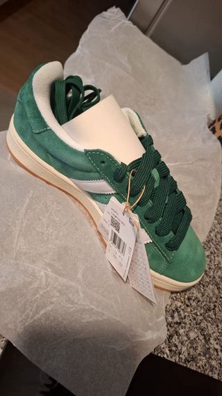Zapatillas deportivas de ante en color verde. - Cierre con cordones. - Detalle de las tres franjas blancas. - Suela de goma.