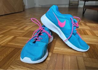 Zapatillas deportivas Nike originales se han usado un par de veces no tienen ningún desgaste ni marca están tal y como se puede apreciar en las fotos.Talla 38. En mi perfil tengo otras iguales pero en color negro también con muy poco uso y prácticamente igual que estas nuevas.