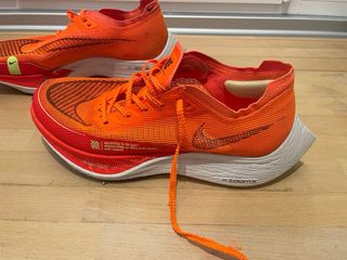 Zapatillas de running Nike Alphafly en vibrantes tonos rosas y negros. Diseñadas para ofrecer un rendimiento excepcional. - Tejido Atomknit. - Mediasuela ZoomX. - Swoosh característico de Nike. - Usadas un 10k - Con su caja y su bolsa Nike